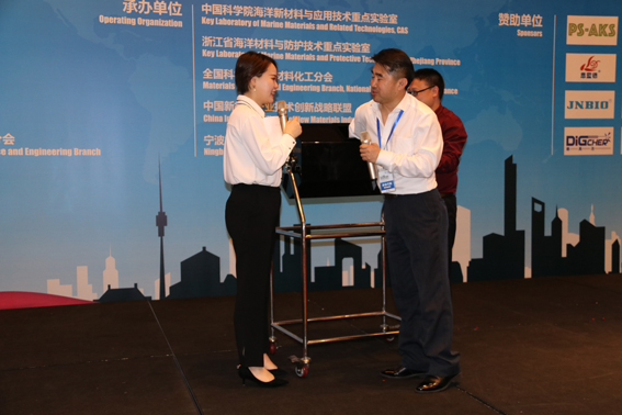Mr. Xue Qun Ji visits the Huahui stand. Photo: D. Hosner
